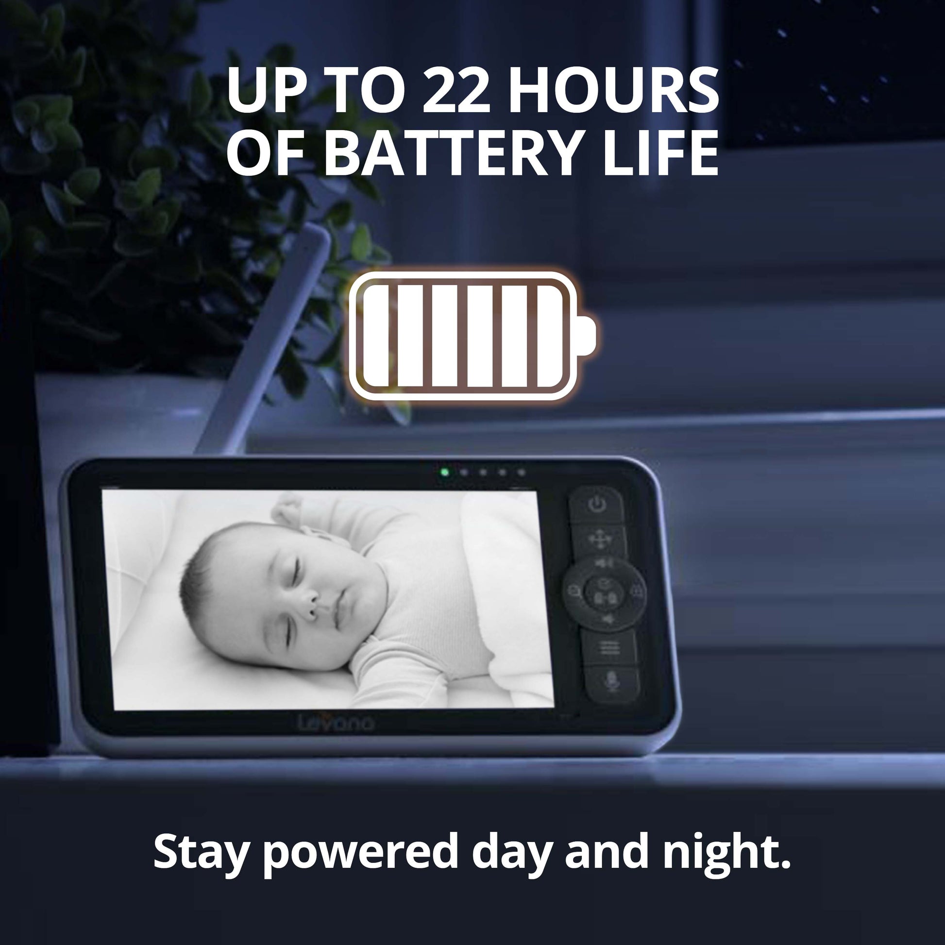 Battery-operated cameras die quickly and could leave you without your baby monitor if forgotten about! Nala's camera comes with an 8.6ft USB power cable, so you should always be able to reach a power source.